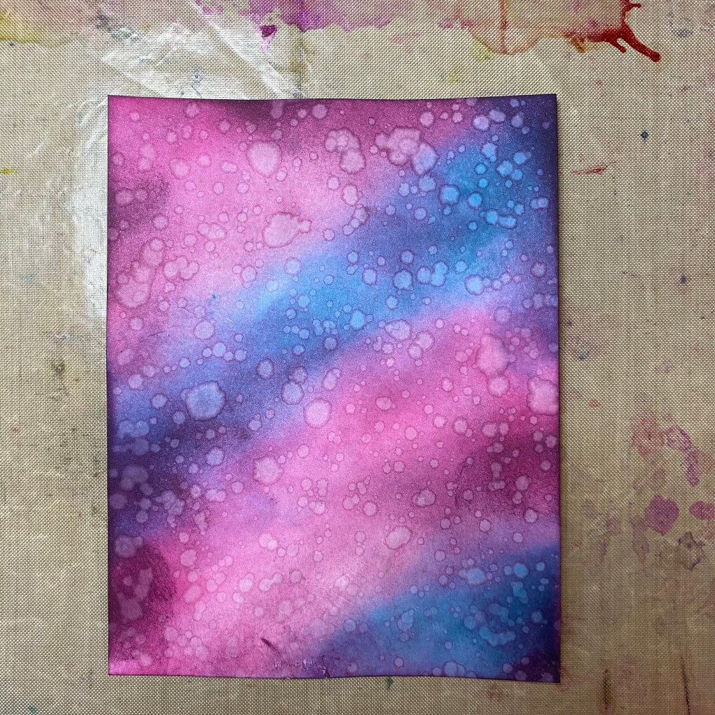 This glaze on top of the inked background created the exact contrast of grunge and beauty I was looking for. The amazing thing about Galaxy Glaze is how it shines and changes color in the light. You would never think that murky, grey paste would dry to something so stunning.