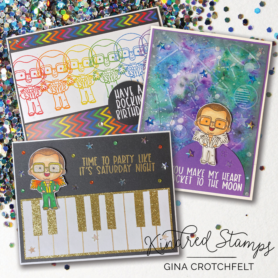 Because any night (or day) is alright for stamping. And there’s stamping fun to be had with the new “Rockin” stamp set from Kindred Stamps. This tiny stamper is sure to make you feel the music.