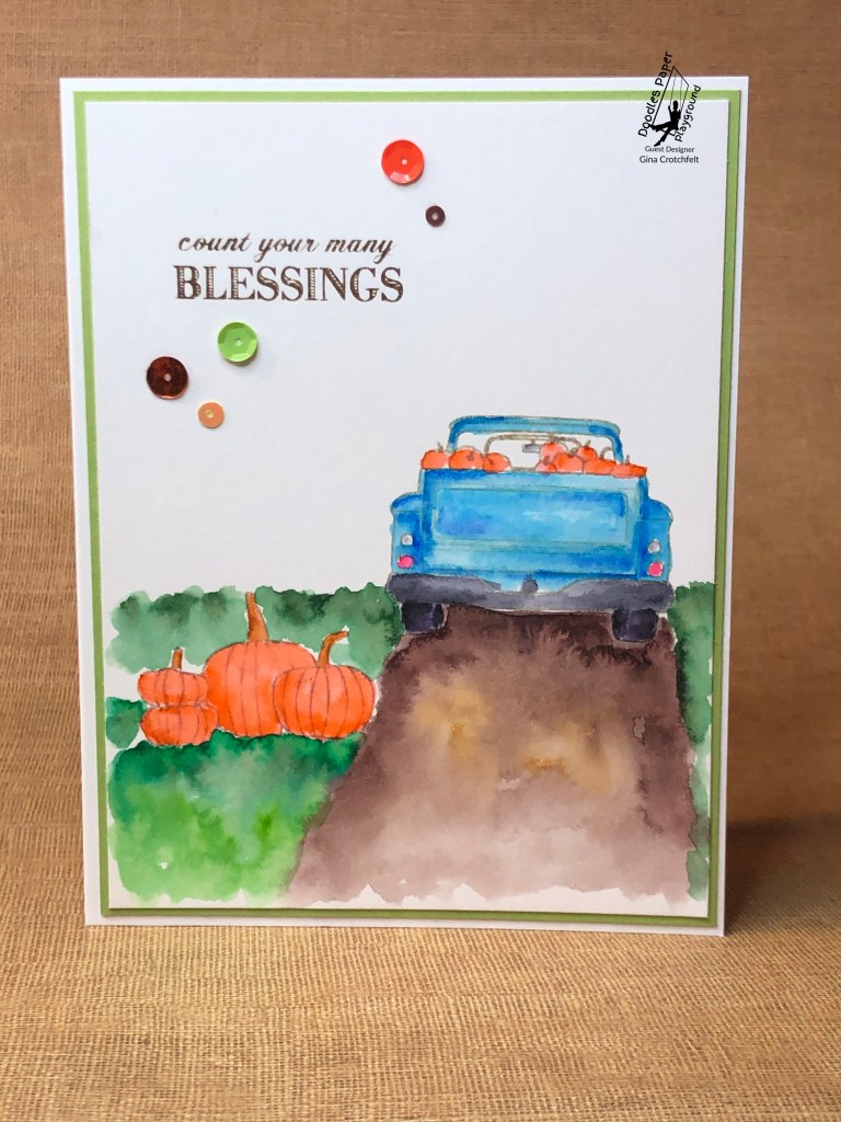 This card is a nod to a few of my favorite fall things…the beautiful colored leaves, Thanksgiving and yes, pumpkin spice everything. It was truly inspired by the “Give Thanks” Sparkle Blends that was part of the New October 2020 release from Doodles Paper Playground. The colors caught my eye right away and I couldn’t wait to build a color palette off it.