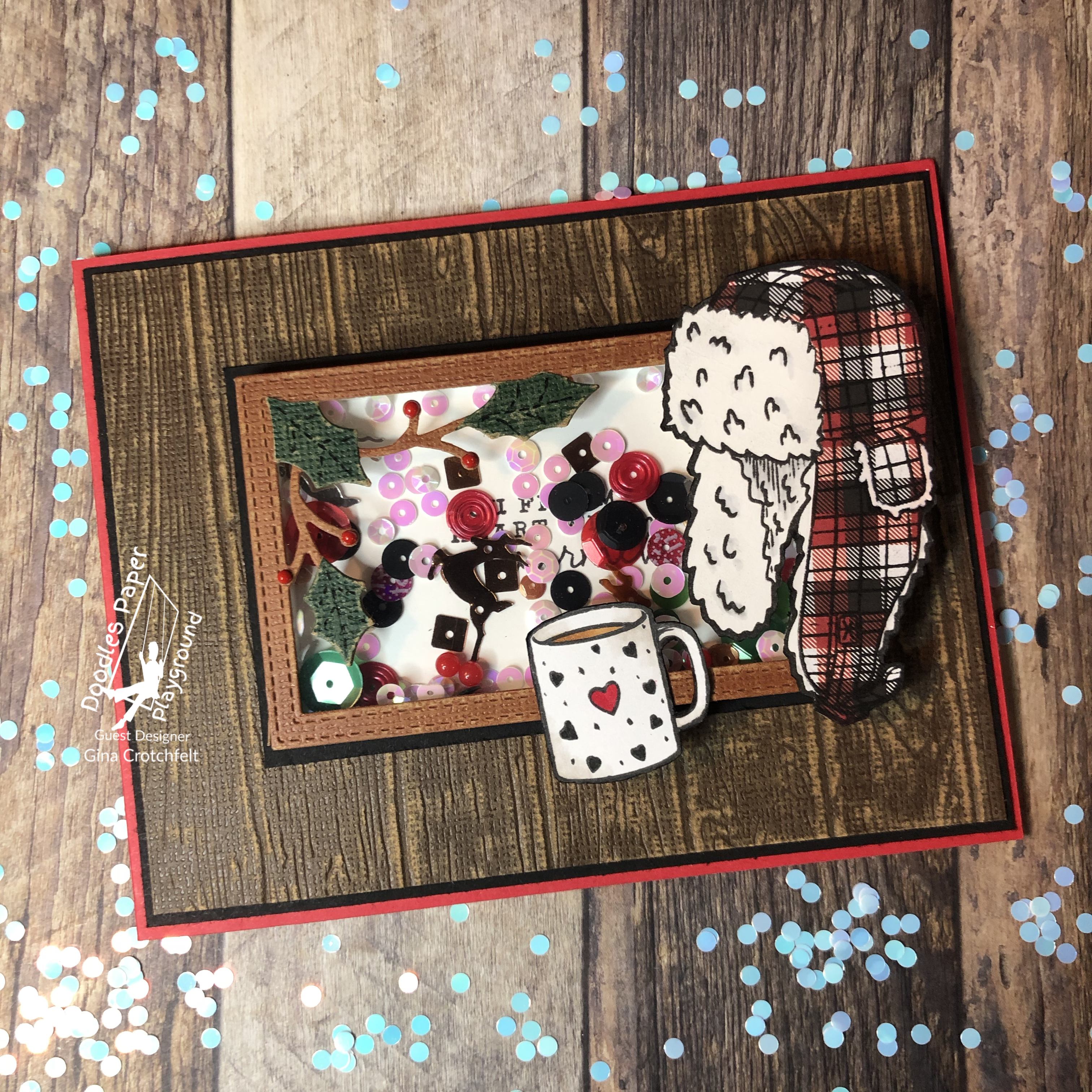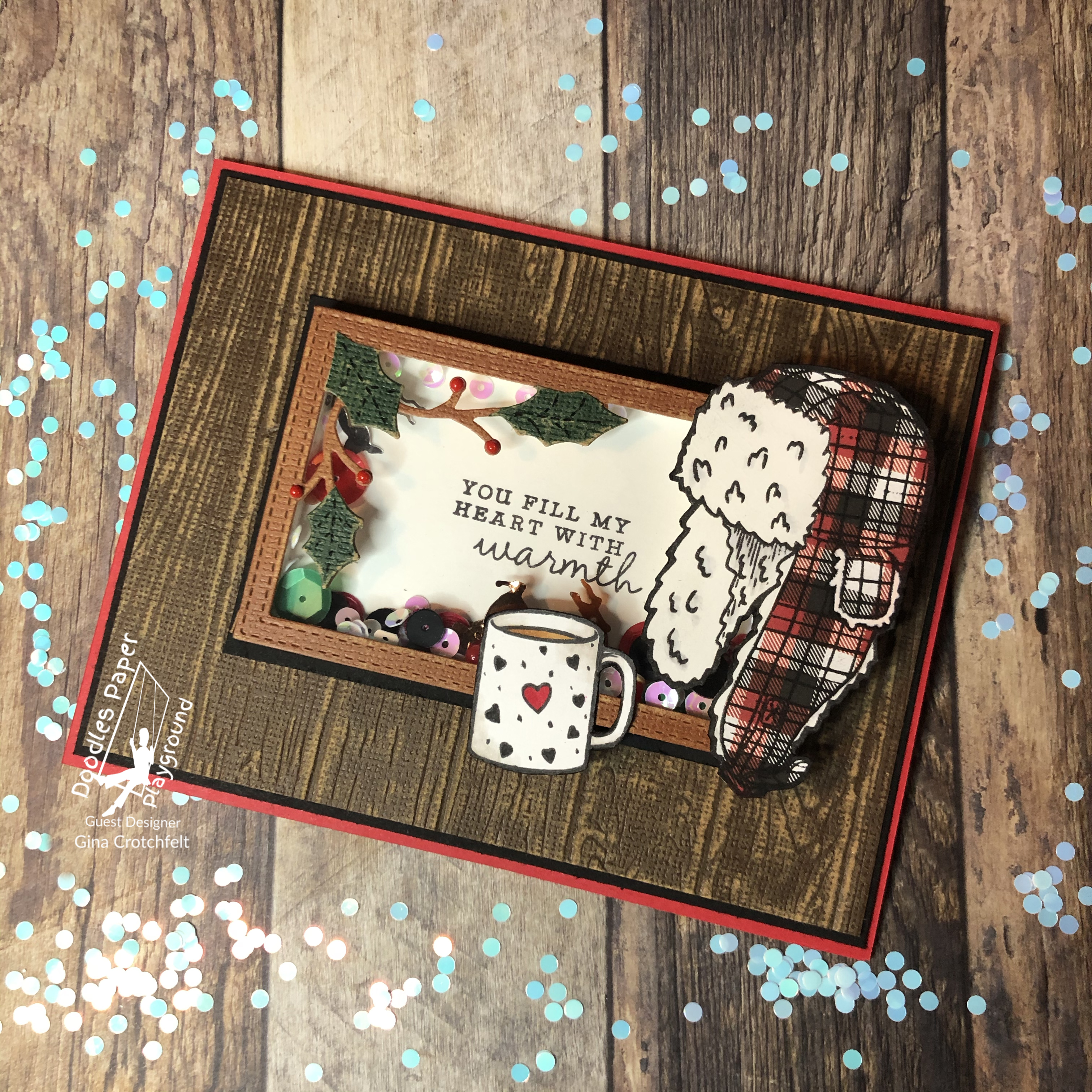 …is not quite frightful, but that’s not stopping me from thinking about fuzzy hats and warm cups of cocoa! This card makes me want to curl up in front of the fireplace after a day in the snow.